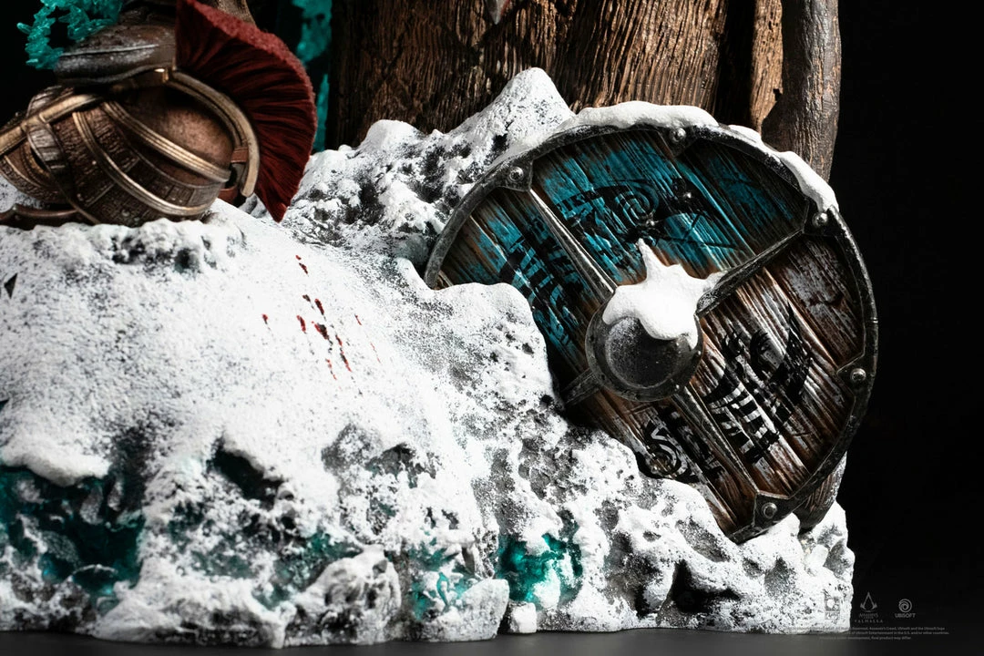 This beautifully crafted premium statue showcases a detailed sculpt of Eivor, the fierce and battle-hardened Viking raider who leads a clan of Norsemen to England, in Assassin’s Creedยฎ๏ธ: Valhalla.