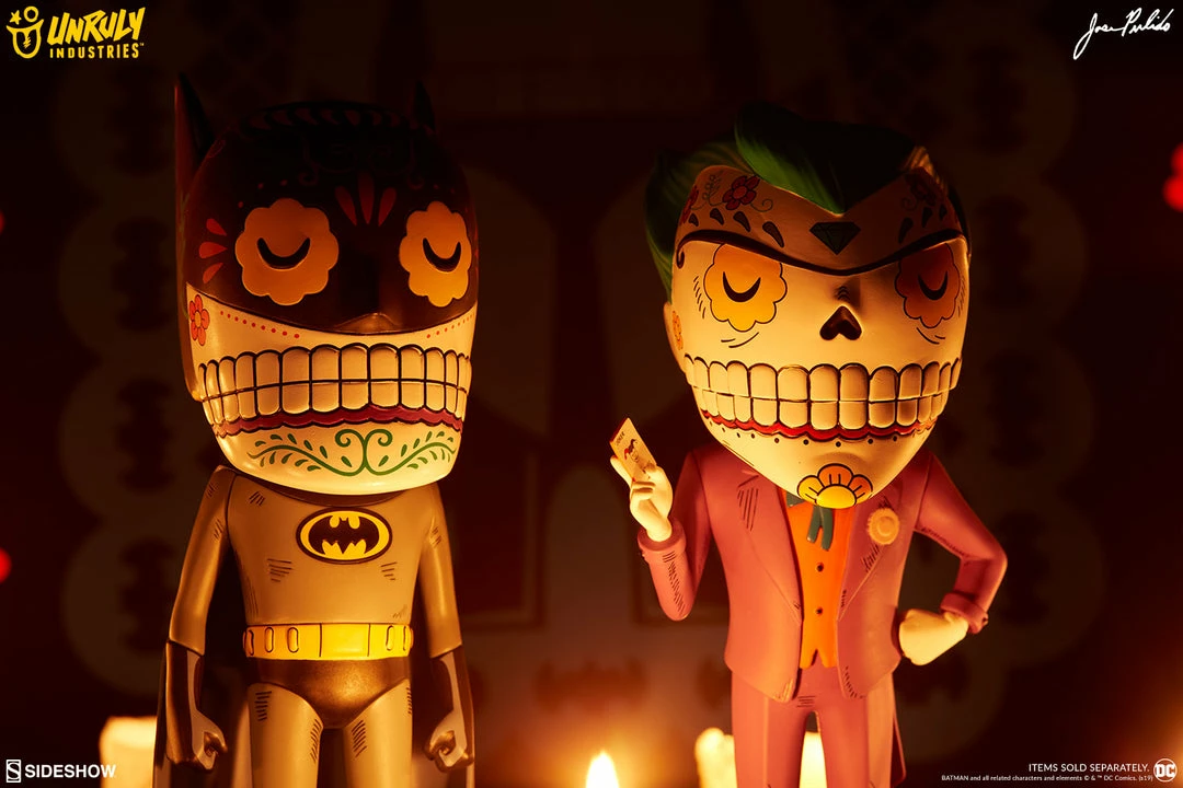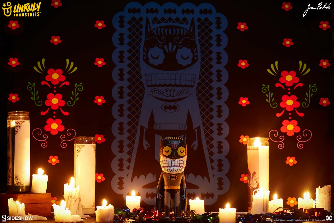 The Dark Knight shines bright in vibrant Día de Los Muertos style with the Batman Calavera limited edition designer collectible toy by Jose Pulido!