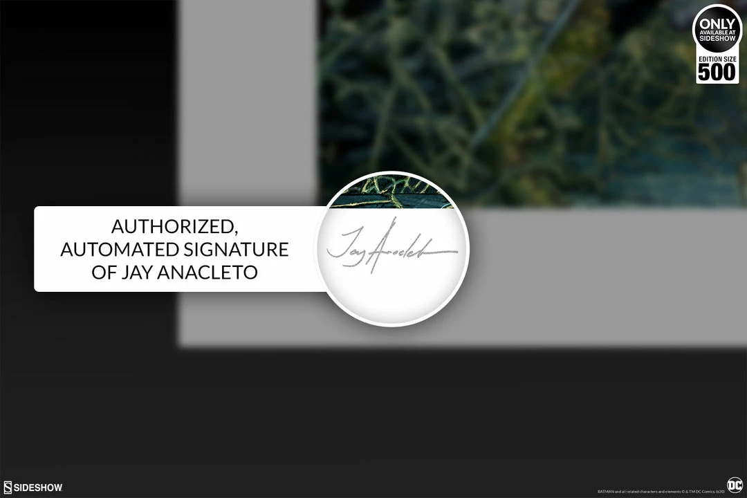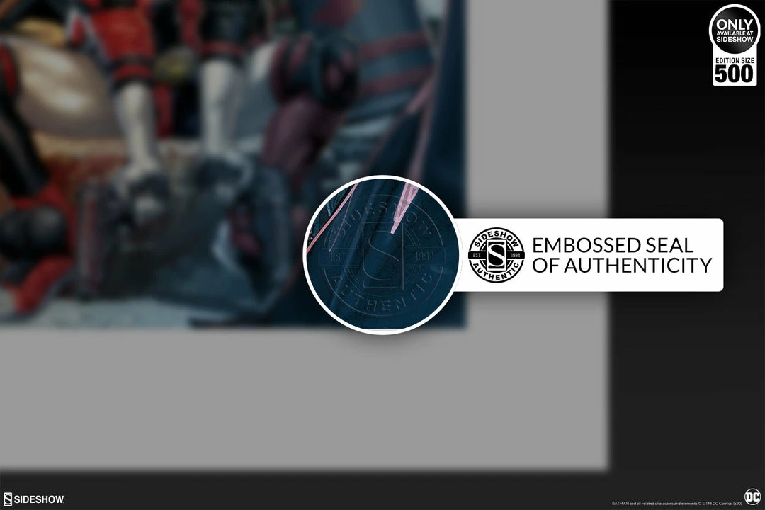 Originally created as a retailer exclusive variant cover for Batmanโข: Detective Comics #1000, a landmark issue celebrating 80 years of Batman in DC Comics, this highly detailed comic book artwork is now available to fans as a fine art collectible exclusively through Sideshow. Each Batmanโข: Detective Comics #1000 Fine Art Print features an authorized, automated artist signature and an embossed Seal of Authenticity as a part of the limited edition of 500 pieces.