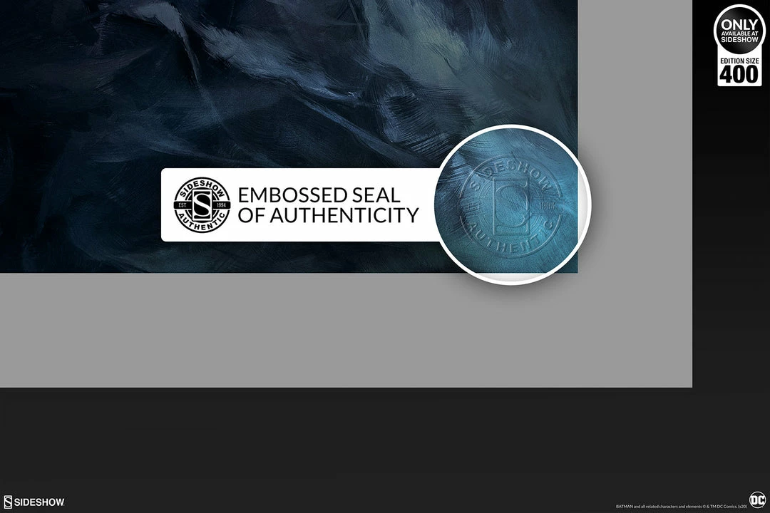 Originally created as a variant cover for Batman: Detective Comics #1006 (2016), written by Peter J. Tomasi for DC Comics, this dreamy illustration of the Dark Knight is now available in a fine art collectible format. Each Batman: Detective Comics #1006 Fine Art Print features an authorized, automated artist signature and an embossed Seal of Authenticity as a part of the limited edition of 400 pieces.