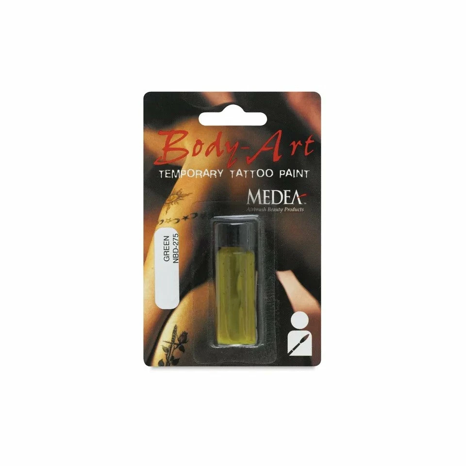 Achieve the professional, highly realistic “tattoo” look that has been used in Hollywood for more than 15 years, with Temporary Body-Art Airbrush Ink, Paint On Body-Art Colors, Adhesive Body-Art Stencils, and accessories. It’s simple to get started. Simply choose a tattoo design and color scheme, apply the tattoo to the skin with an alcohol pad, hand paint or airbrush on the colors, dust with setting powder, and you’re done! These waterproof colors are ideal for hand-painting realistic-looking temporary tattoos. They’re fun, safe, non-toxic, and they last for days. Only the attitude is permanent!