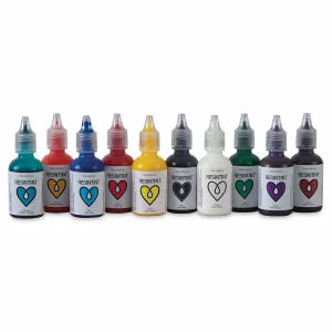 Originals, Set of 10ย – This set includes Red, Orange, Yellow, Green, Blue, Turquoise, Purple, Brown, Black, and White in 0.85 oz (25 ml) bottles.