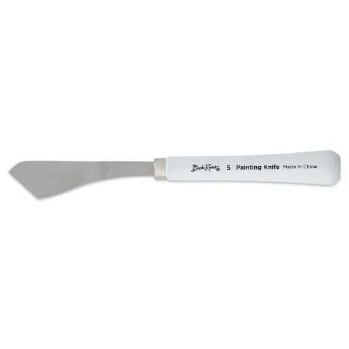 These fine quality painting knives are made to Bob Ross’s specifications. Each knife measures slightly more than 8″ overall. The blades are approximately 3-3/4″ long.