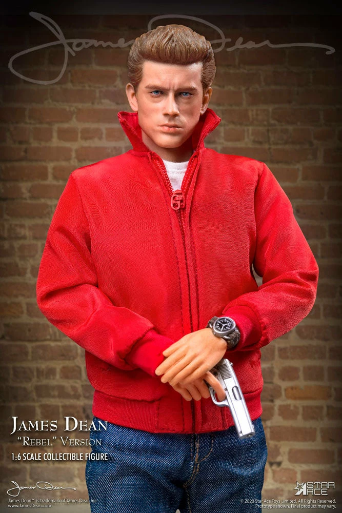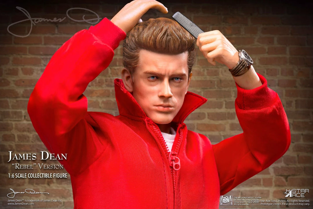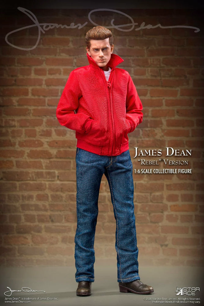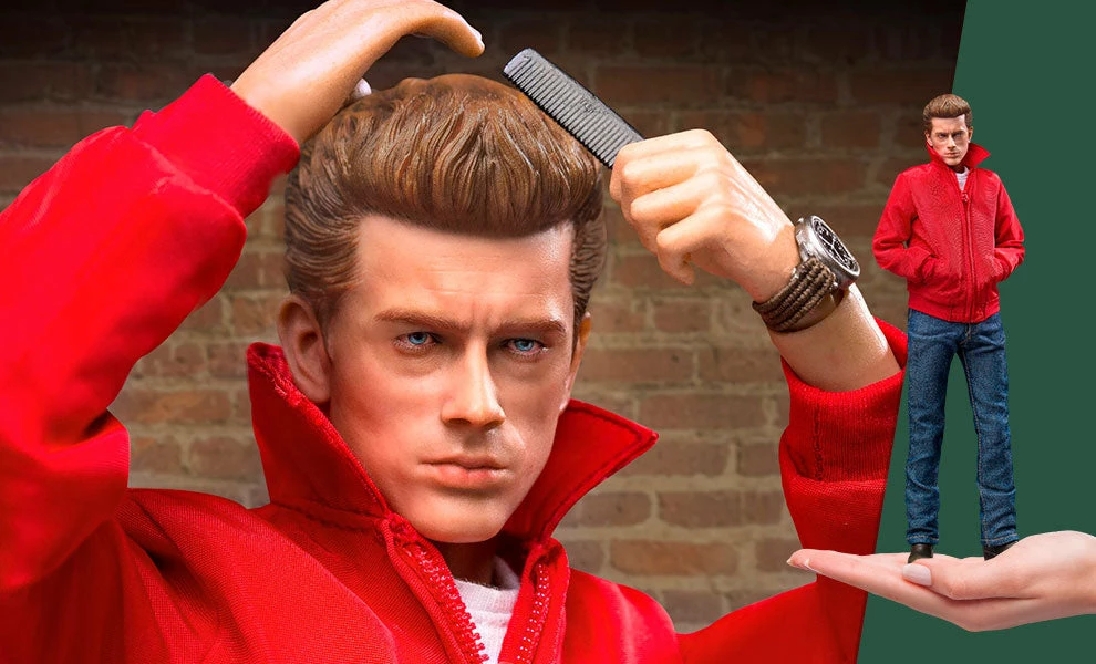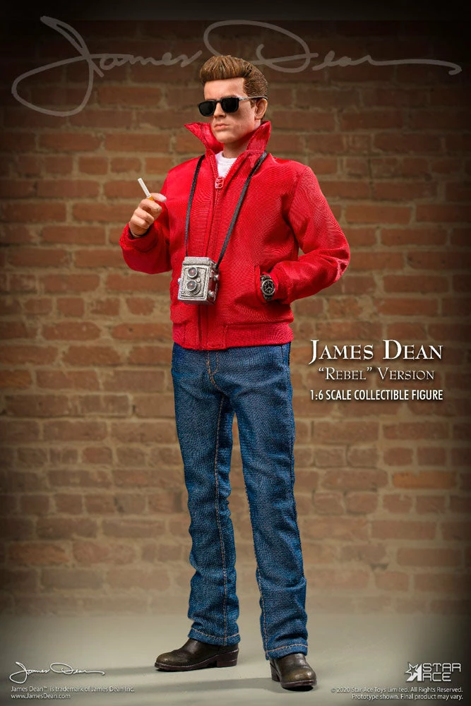 Star Ace brings James Dean to life as a fully realized sixth scale figure dressed as a teen “Rebel” and featuring a detailed and accurate likeness and dressed in his iconic red jacket, white T-shirt, black boots and jeans. Accessories include sunglasses, a comb, cigarettes and a camera.