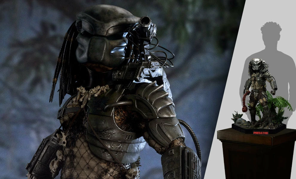 The importance of this statue simply cannot be overstated. The last 1:3 scale Jungle Hunter Predator statue came out 12 years ago. And this magnificent piece is a direct homage to that classic but turned way up to 11! The Predatorโs skin comes alive in this intricately detailed masterpiece of polystone and mixed materials. Dare to take a closer look at his multitude of features, all expertly orchestrated by Prime 1 Studio. The Predator is ready to eviscerate his prey with the wrist-mounted double blades on his right arm. He comes with two sets of open and closed fists, with extended and retracted blades. Each of his โdreadlocksโ is meticulously placed. Instead of merely sculpting it, the netting all over his body is real material. And our craftsmen have synced perfectly together to render the battle-worn look of his masks and other armor pieces through sculpted damage and carefully weathered metal.ย
