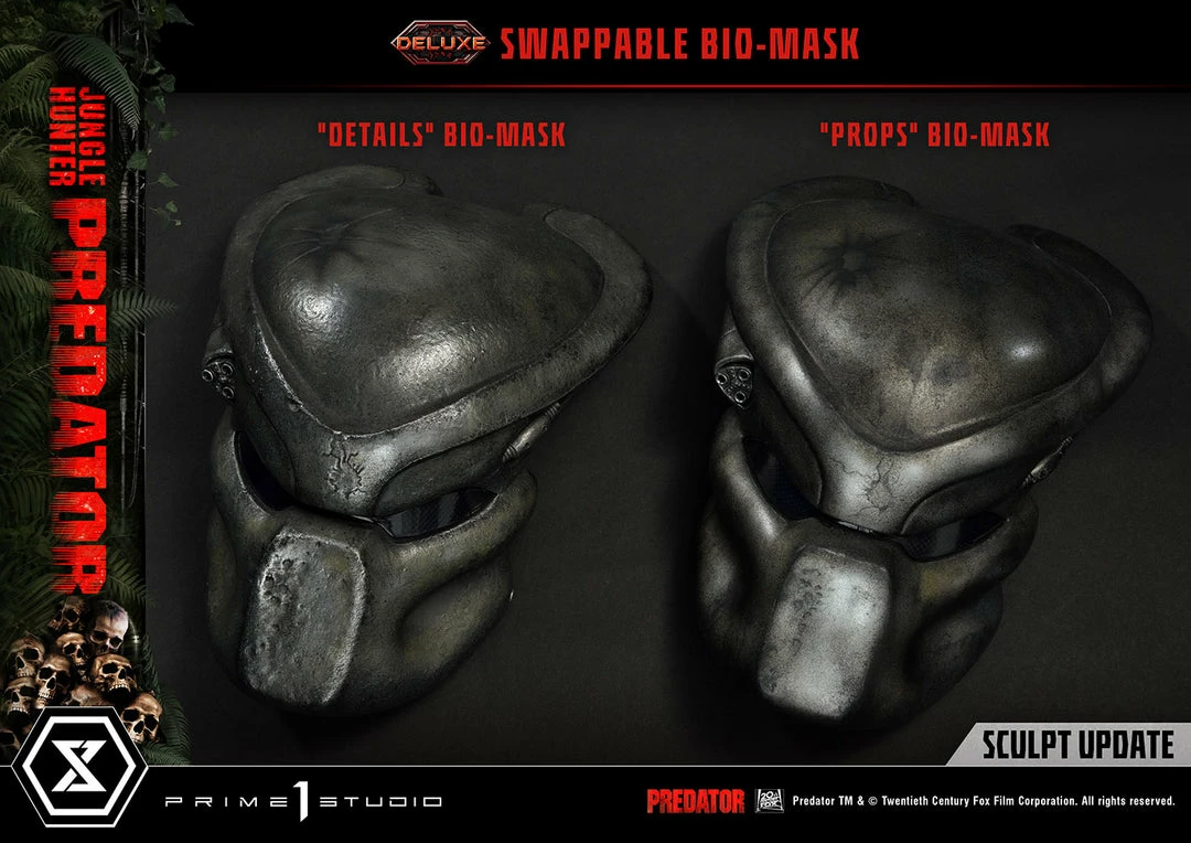 Standing majestically at over 35 inches tall, the Jungle Hunter Predator reveals itself as an imposing, otherworldly peril intent on relentlessly hunting its prey. In this pivotal moment, where the Jungle Hunter Predator reveals his true form to Dutch (the main protagonist of the film), the skilled artisans at Prime 1 Studio have seated the Predatorโs Bio Mask in the gnarled roots of a tree. In the film, the Predator takes off his Bio-Mask and drops it in the putrid, leech-infested water of the jungle, which we have faithfully recreated here with translucent resin and detailed inclusions, for a convincing watery effect.
