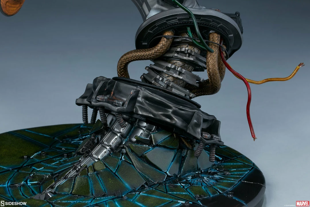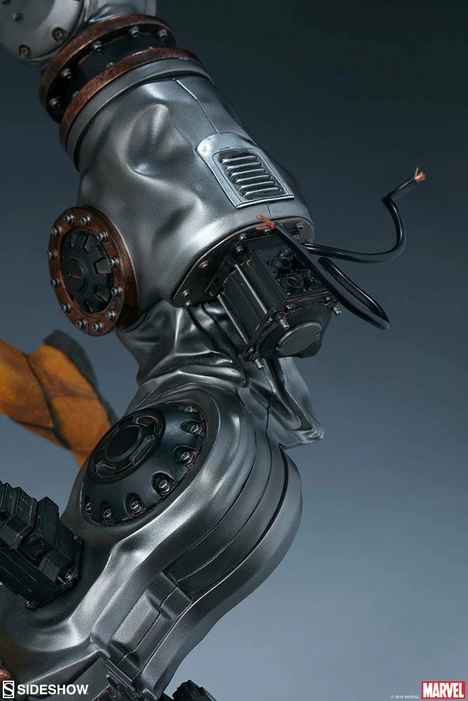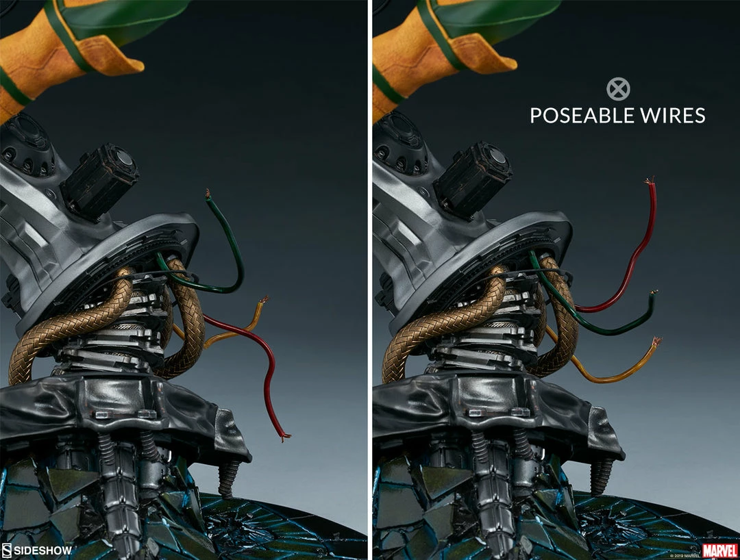 Measuring just over 22” tall, the Rogue Maquette defies gravity in this dynamic and exciting composition that features the mutant’s marvelous powers on display. Flying over a detailed Danger Room environment base, Rogue wrenches an intricate mechanical buzz saw from the floor, ready to take a swing at any unwelcome X-Mansion guests.