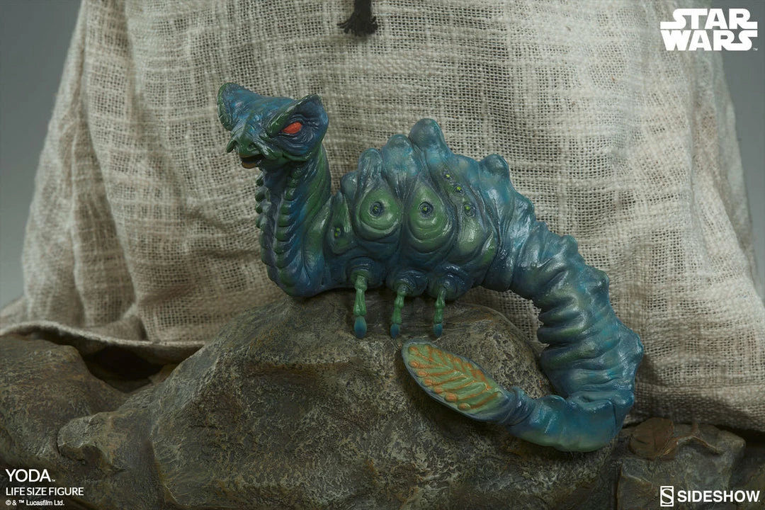 The Force is strong with this one! Capturing Luke Skywalkerโs wise and powerful mentor in astonishing detail, Master Yoda appears in his meticulously tailored Jedi robes, resting serenelyย againstย his cane as he contemplates the mysteries of the Force. Sideshowโs artists have perfectly captured the magic of Frank Ozโs original puppet in this magnificent true-to-life statue, with features so realistic that you’ll expect him to spring to life at any moment. Standing 32 inches tall on aย Dagobah themedย environment base (complete with colorfulย morpย critter), Sideshowโs life-size Yodaย Star Wars figureย is a dream come true for anyย Star Warsย collector!