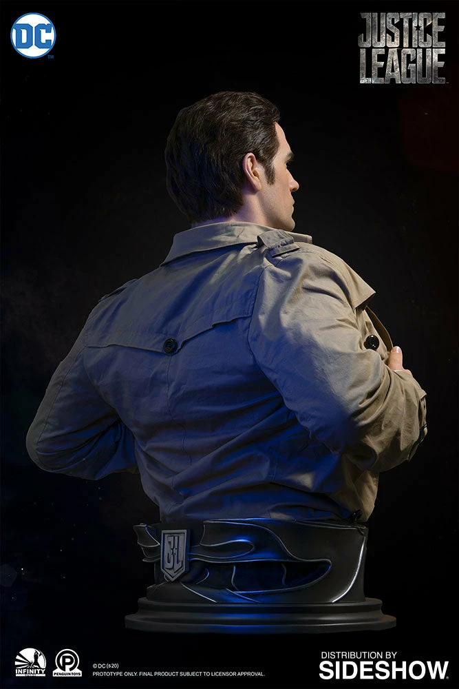 Sideshow and Infinity Studio present this Superman life-size bust, authorized by Warner Bros., and designed and made by Infinity Studio. Modeled based on the most classic scene where he changes from reporter to Superman. The statue is 88cm high, with the head and arm skin all made in medical-grade platinum silicone. Featuring hairs and mustache punched with artificial hair. Almost 100,000 hairs, were punched manually one by one. The eyes are customized blue ocular prosthesis and faithfully represent the Justice League superhero.