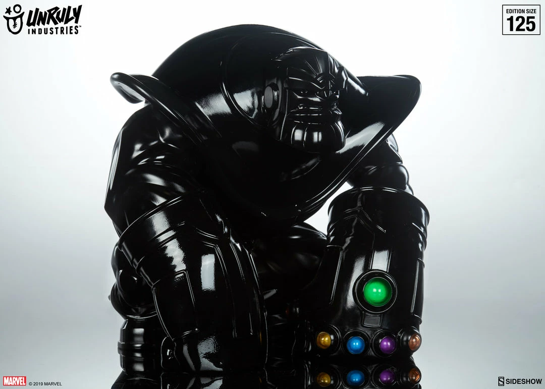 This Thanos will cast a titan-sized shadow over your collection! The Mad Titan (Infinity-Sized) Gloss Black EditionĀ Designer ToyĀ by artist Joe DellaGatta captures the true menace of Marvelās brooding big baddie.